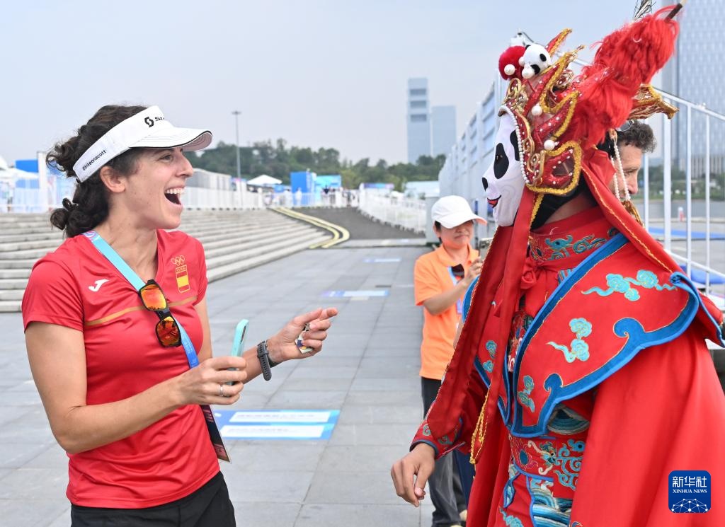 8月15日,中國選手路子清在沖線前與觀眾擊掌互動。她最終位列第九名。