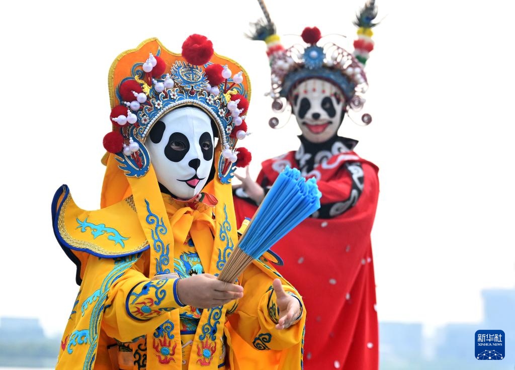 8月15日,演員在頒獎儀式前表演川劇變臉。