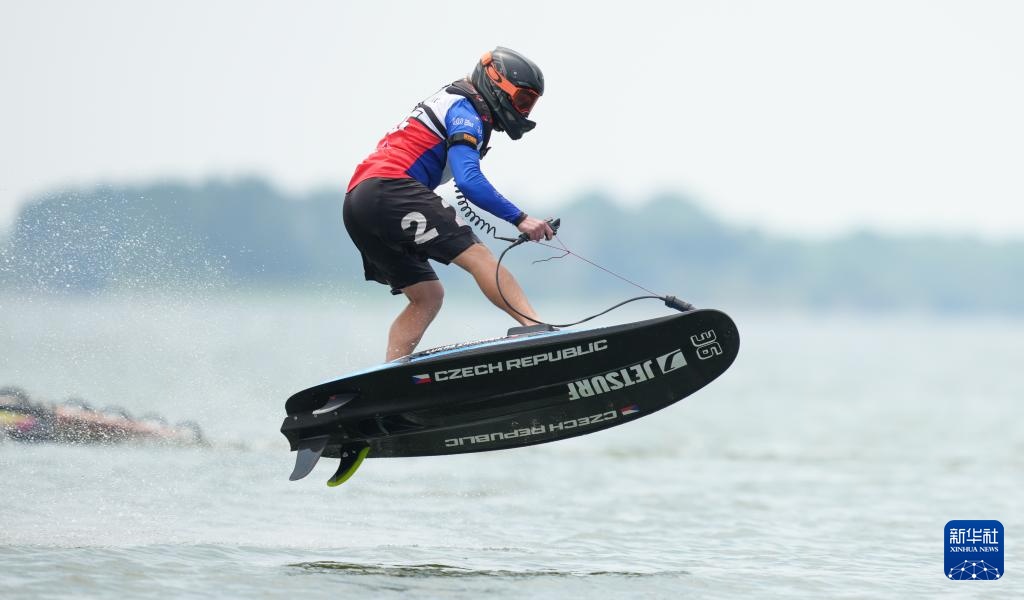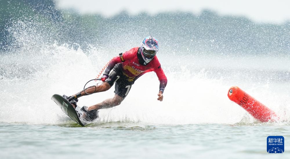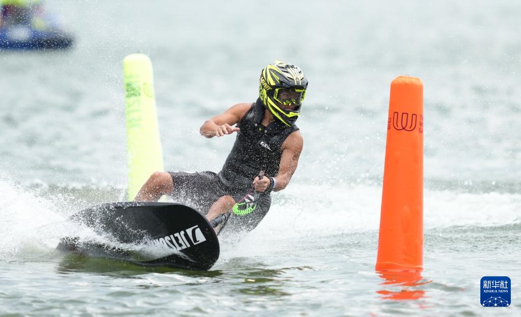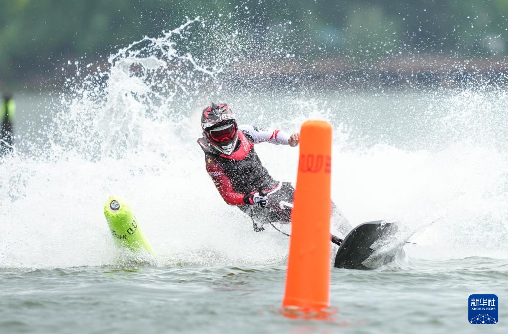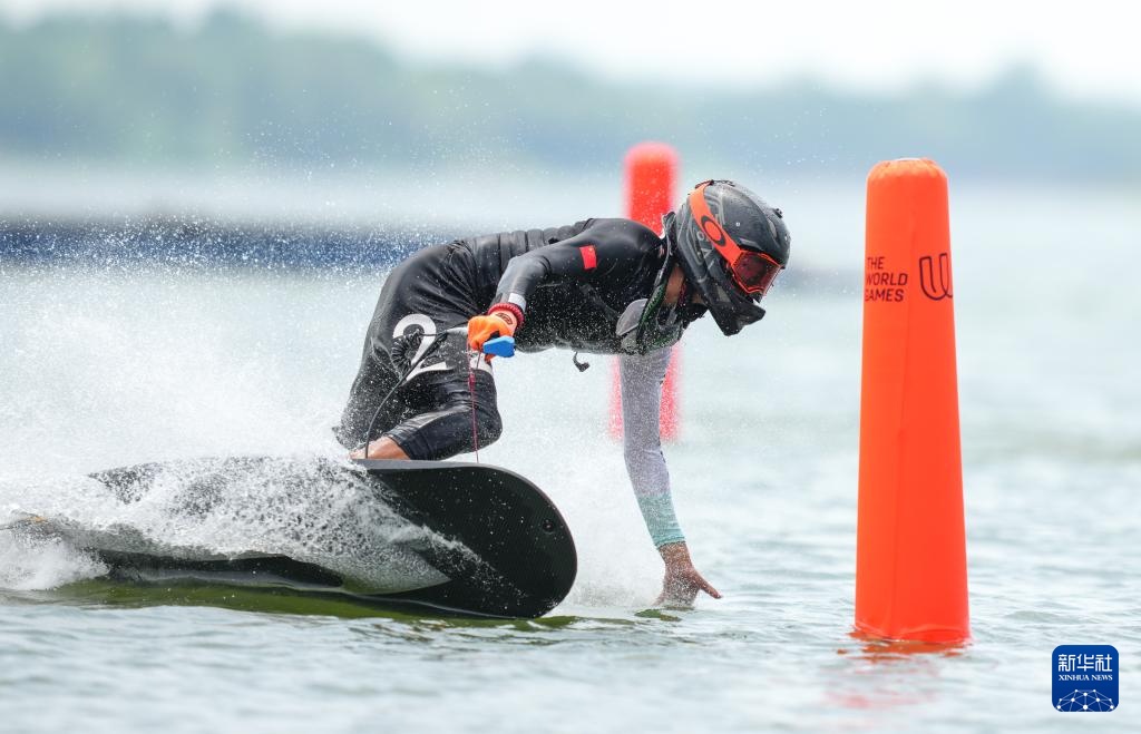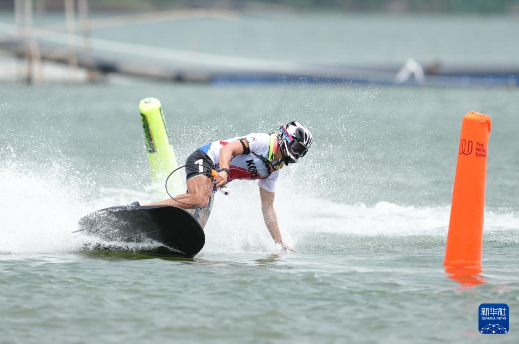 當日,2025年成都世運會摩托艇男子動力沖浪板資格賽在成都三岔湖馬鞍山賽場舉行。