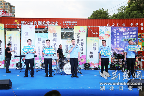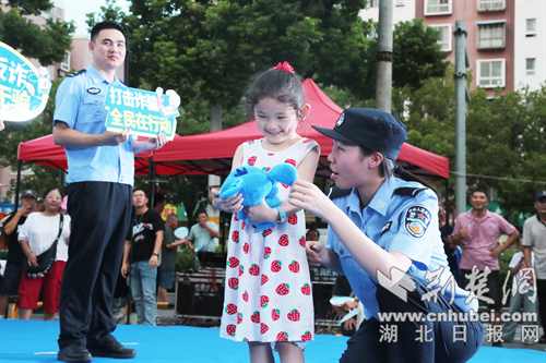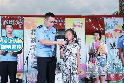 8月14日晚,在沙洋縣“夜享沙洋·煙火濱江”夜市暨“唱響青春·才聚沙洋”夏夜音樂節舞臺上,一名7歲萌娃面對民警提問,清晰說出反詐要點、響亮喊出反詐宣言,贏得臺下觀眾熱烈掌聲。