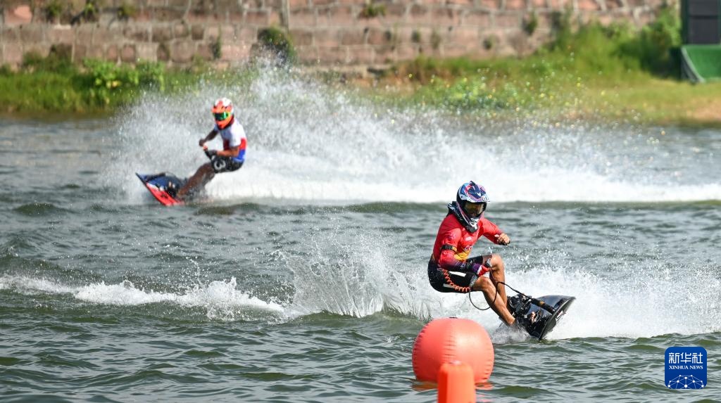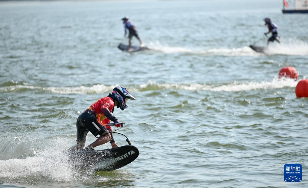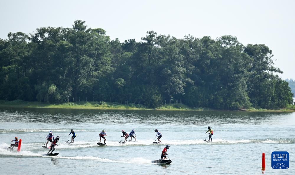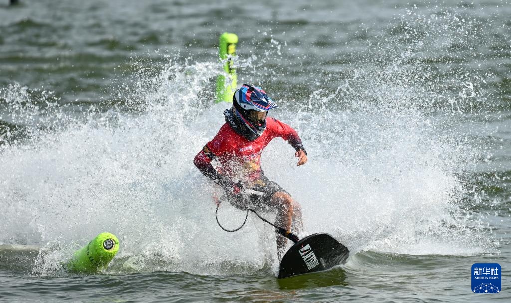 當日,2025年成都世運會摩托艇男子動力沖浪板預賽在成都三岔湖馬鞍山賽場舉行。