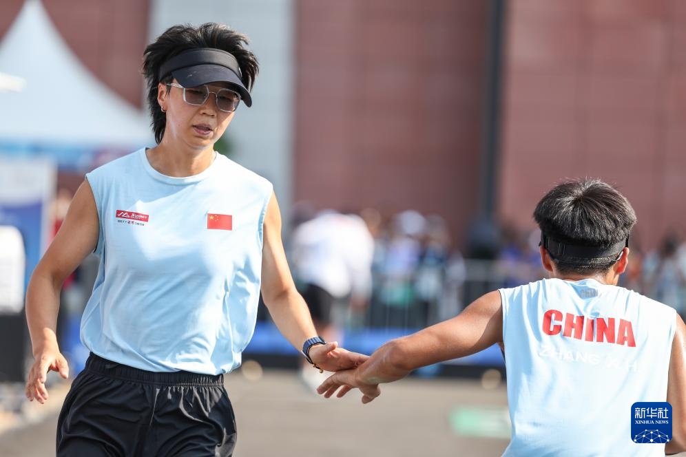 8月15日,中國(guó)隊(duì)選手王晨怡(左)和張曉輝在比賽中。