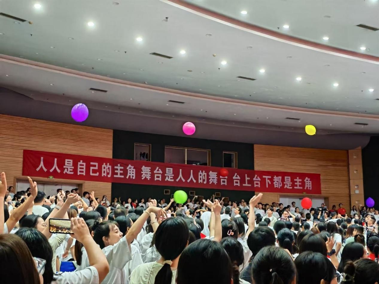 稻草運(yùn)動(dòng)會(huì)的賽場上,運(yùn)動(dòng)員抓著捆好的稻草試了好幾下,還是沒舉起來。講解員突然大聲問:“同學(xué)們,你們相信光嗎?”話音剛落,臺(tái)下一下子亮了起來,大家都打開了手機(jī)閃光燈。“相信!” 好多人一起喊,聲音裹著一片亮光涌過來。這一刻,沒人是旁觀者,每個(gè)人都舉著光,成了場上最亮眼的主角。稻草運(yùn)動(dòng)會(huì)上,奧運(yùn)冠軍們傳遞過來五彩繽紛的好運(yùn)氣球,讓臺(tái)下的學(xué)員們也能像臺(tái)上的運(yùn)動(dòng)員們一樣玩一場空氣排球。所有的學(xué)員們興奮得伸出手,希望迎接自己的好運(yùn)氣球。此刻,人人都是自己的主角,報(bào)告廳是人人的舞臺(tái),臺(tái)上臺(tái)下都是主角。