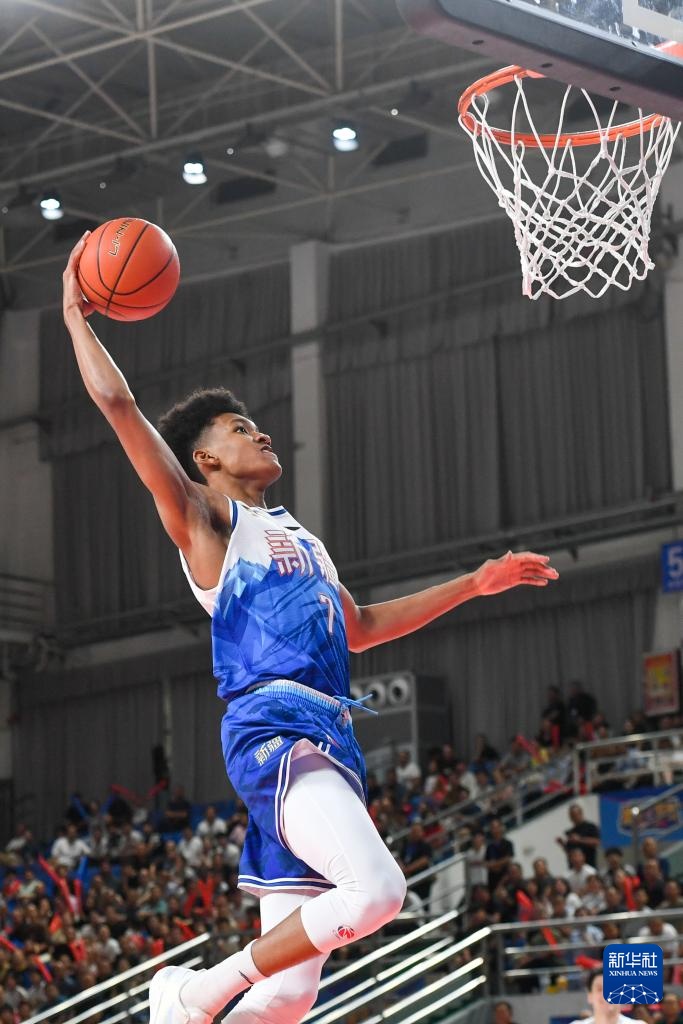 8月15日,新疆伊力特隊球員馮傲在比賽中扣籃。