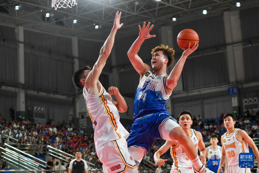 8月15日,山西汾酒隊球員賈明儒(右一)在比賽中投籃。