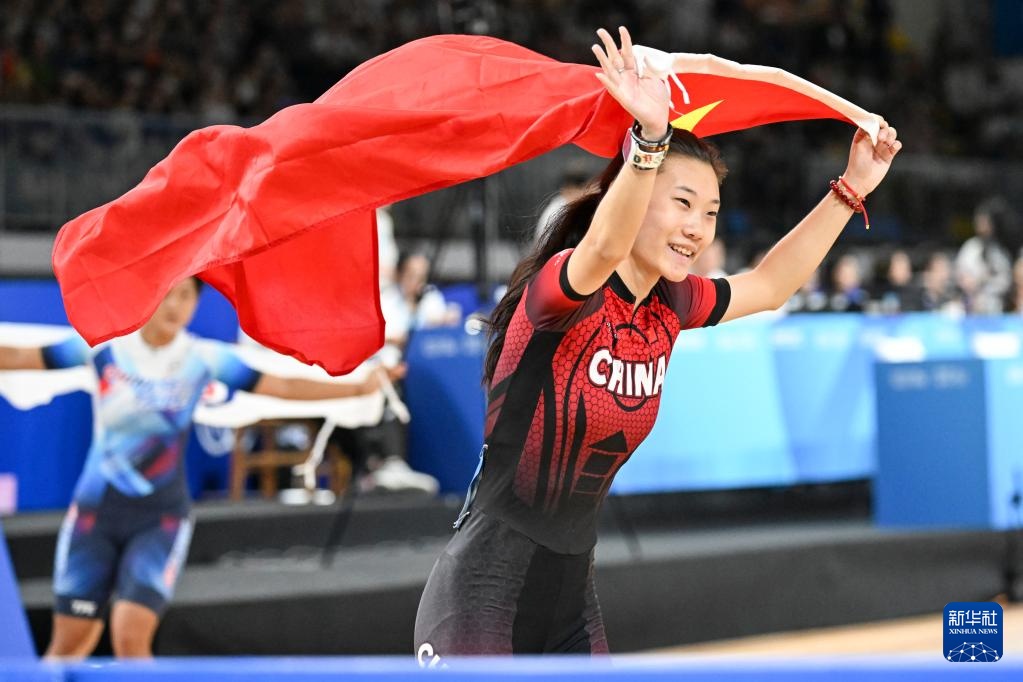 8月16日,中國選手溫晶晶在比賽后慶祝。最終她獲得季軍。