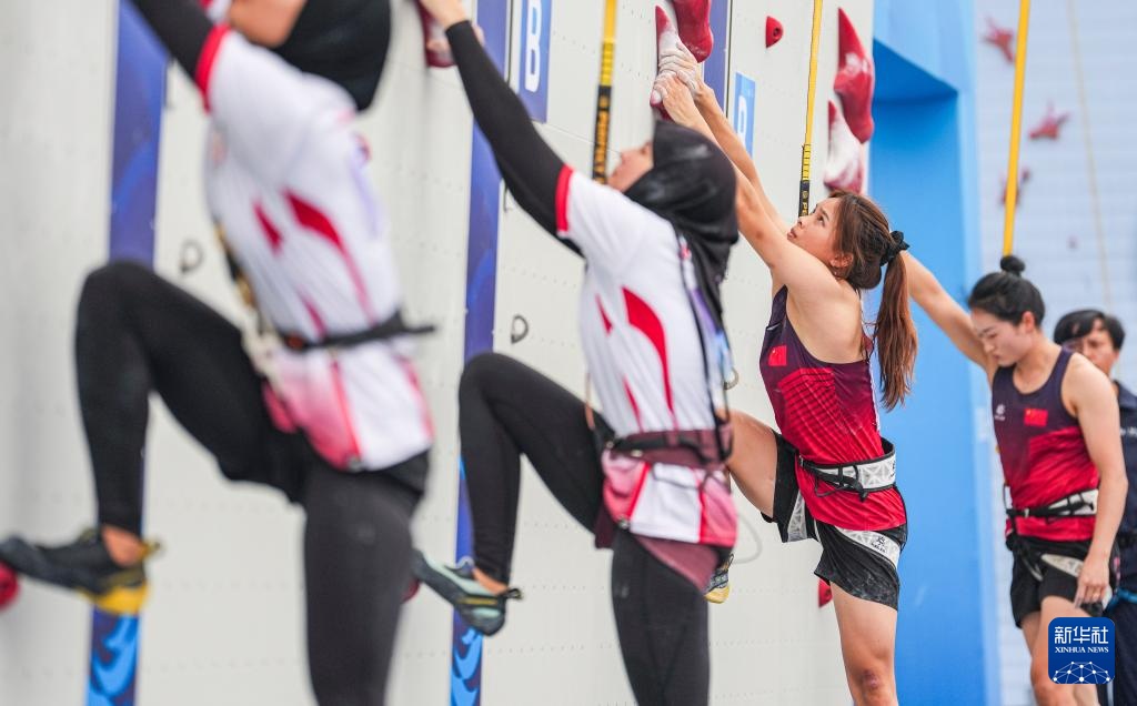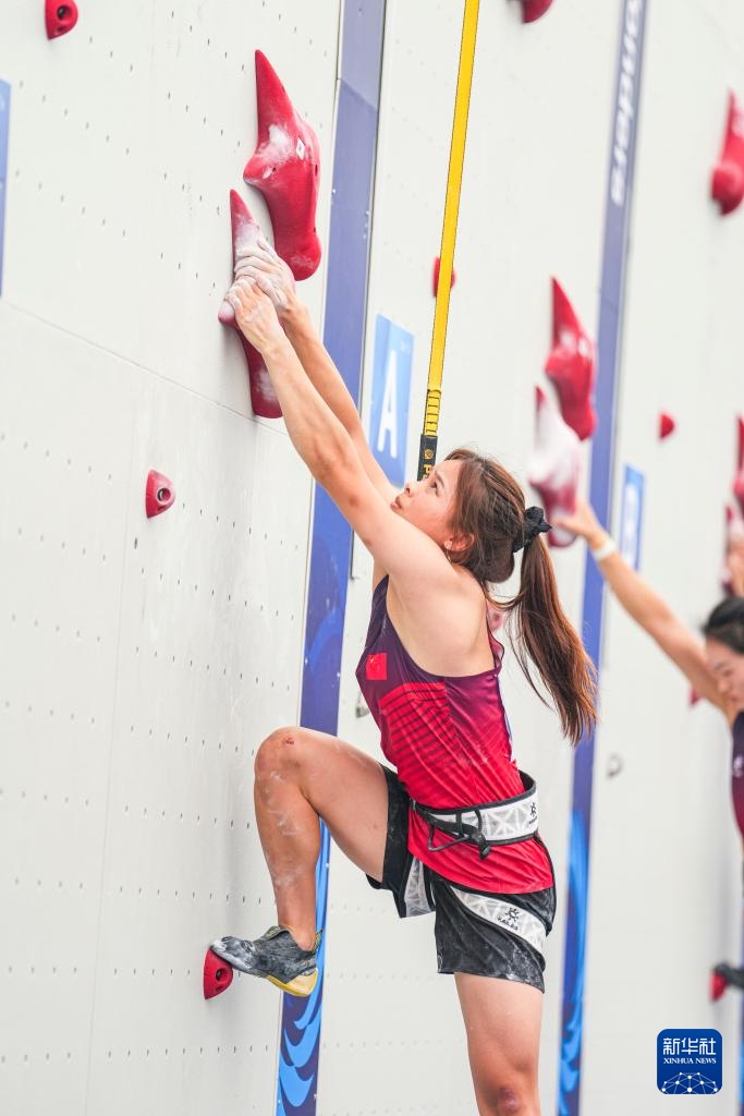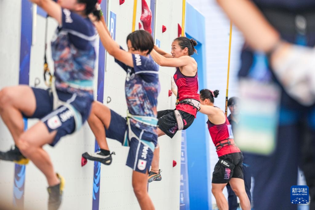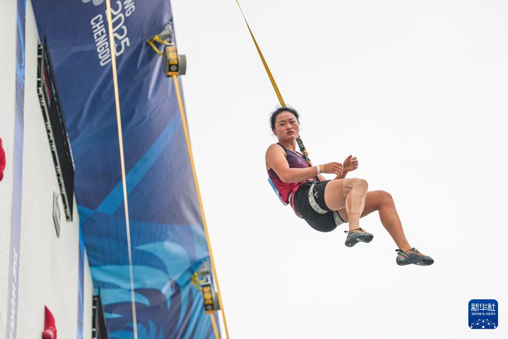 當日,在2025年成都世運會攀巖女子速度接力資格賽中,中國組合覃于妹/張少琴和周婭菲/鄧麗娟雙雙晉級淘汰賽。