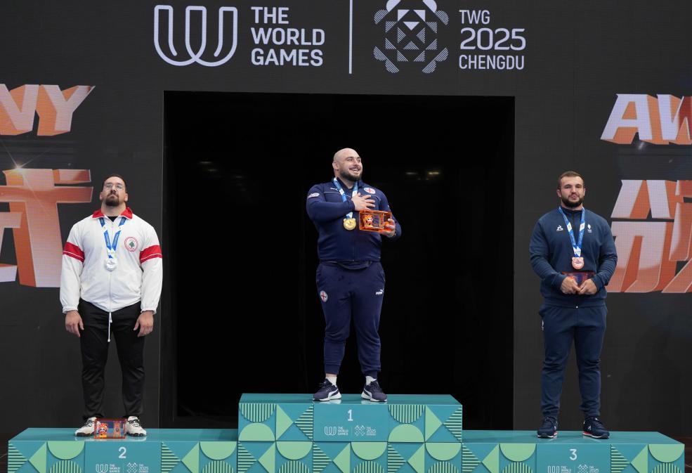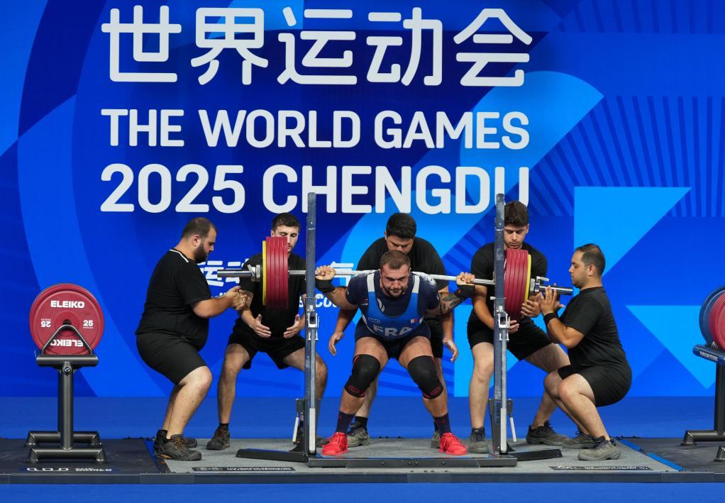 當日,在2025年成都世運會力量舉男子經典超重量級決賽中,格魯吉亞選手捷穆里獲得冠軍,黎巴嫩選手艾蒂安獲得亞軍,法國選手佩羅獲得季軍。