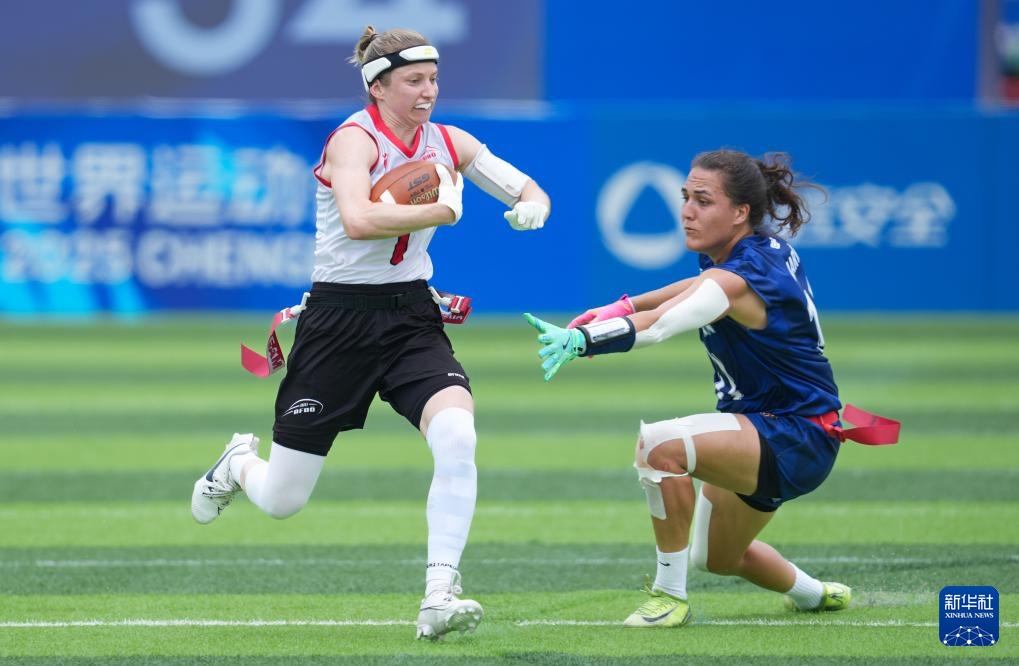 當日,在四川省成都七中東部學校田徑場舉行的2025年成都世運會腰旗橄欖球女子四分之一決賽中, 奧地利隊40比28戰勝英國隊。