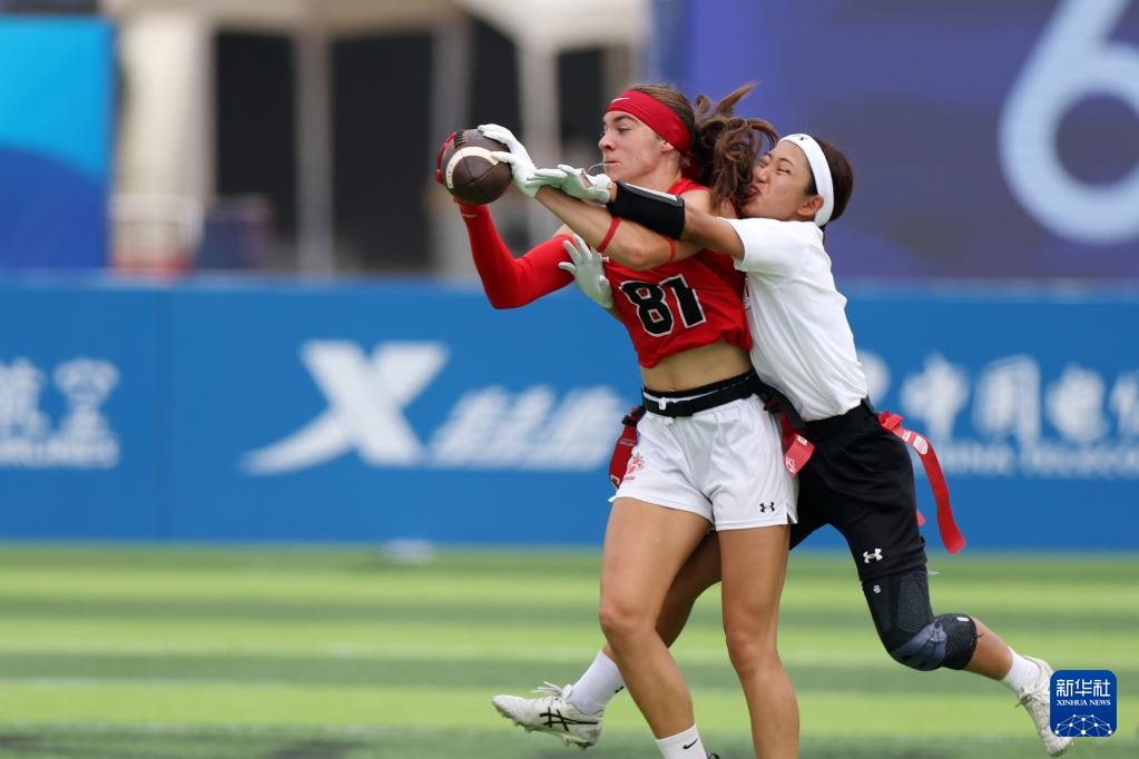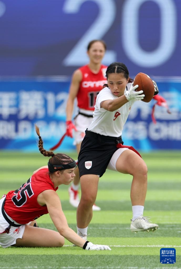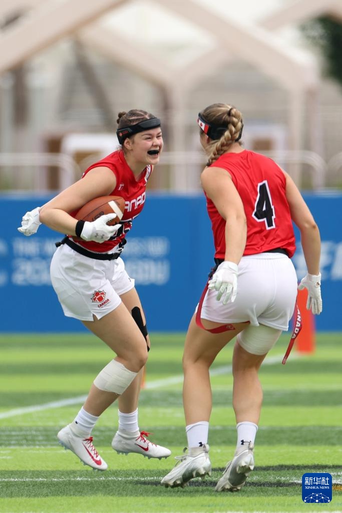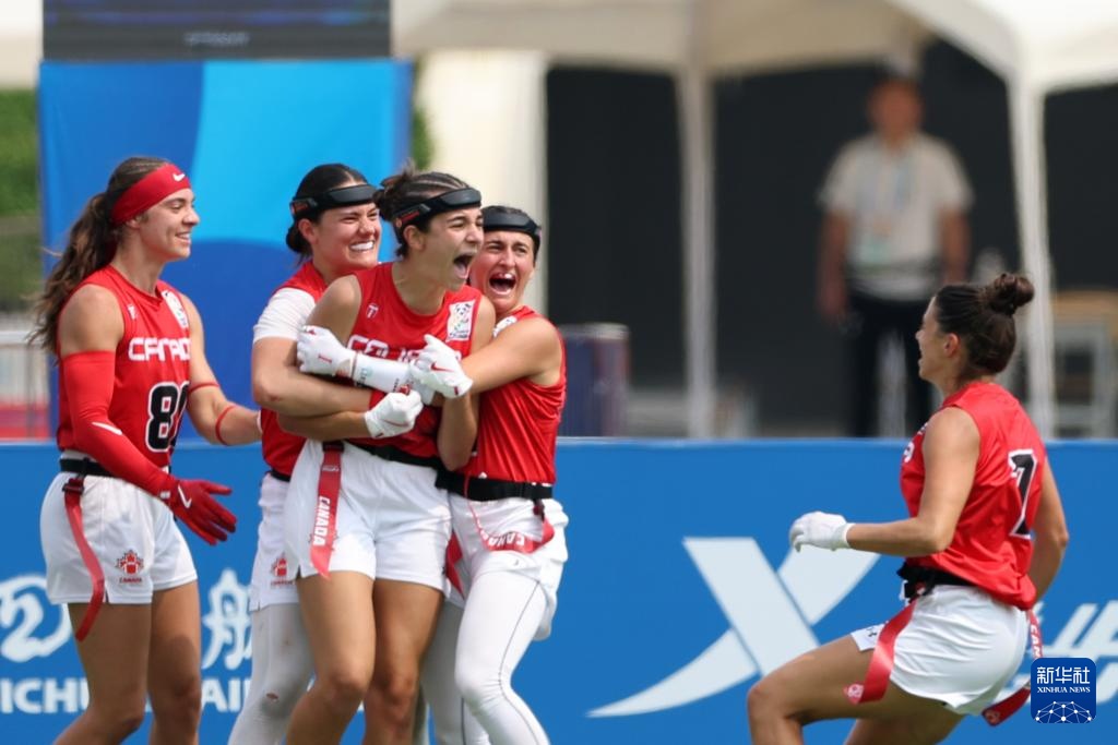 當日,在成都七中東部學校田徑場舉行的2025年成都世運會腰旗橄欖球女子四分之一決賽中,加拿大隊32比27戰勝日本隊。