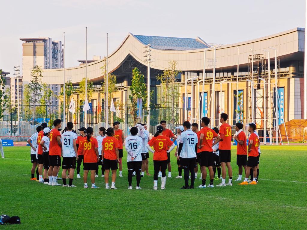 “這個儀式叫‘Spirit Circle’(精神圈),主要是互相表達對對手的欣賞與肯定,同時也在飛盤精神層面互相指出需要調整的地方,最后我們感謝日本隊來到中國跟我們交流。”周安琪向記者介紹。