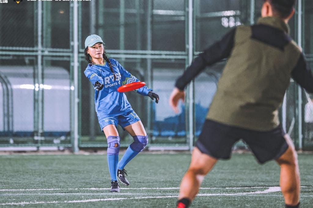 而周安琪不但留了下來,還成為了國內最頂尖的女子選手。她曾是北京大學跳高特長生,畢業后在上海一家運動品牌公司工作。擁有絕佳運動能力的她一上手便對飛盤運動著迷,很快加入了當地競技水平最高的滬蛙俱樂部,接受較為系統的團隊飛盤訓練,并在前年通過選拔進入國家隊。
