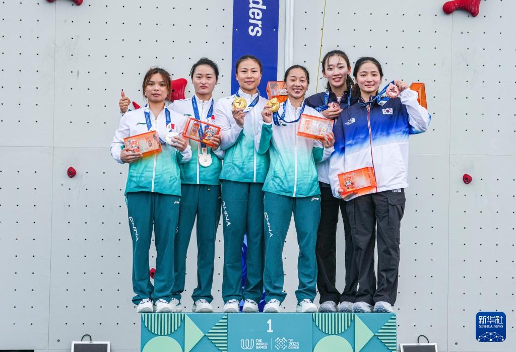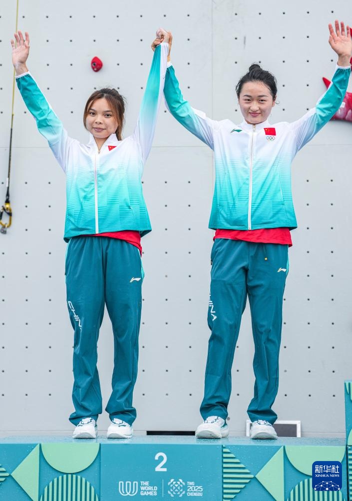 當日,在2025年成都世運會攀巖女子速度接力賽決賽中,中國組合鄧麗娟/周婭菲奪冠,中國組合覃于妹/張少琴獲得亞軍,韓國組合鄭智敏/成韓雅凜在銅牌賽中戰勝印度尼西亞組合馬德·里塔·庫蘇馬/薩爾薩比拉獲得季軍。