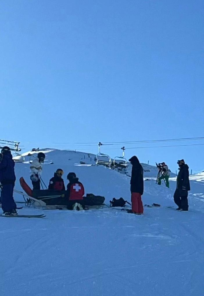 近日流傳于互聯網上的眾多圖片顯示,有多名雪友在谷愛凌位于新西蘭的訓練地點與她合影。15日,有雪友發布了谷愛凌被雪場救援隊抬上擔架的照片。