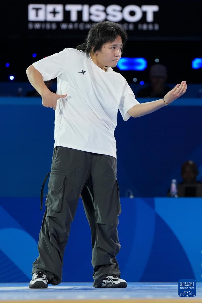 8月16日,中國選手劉清漪(左)和郭樸在女子單人霹靂舞D組循環賽比賽中。
