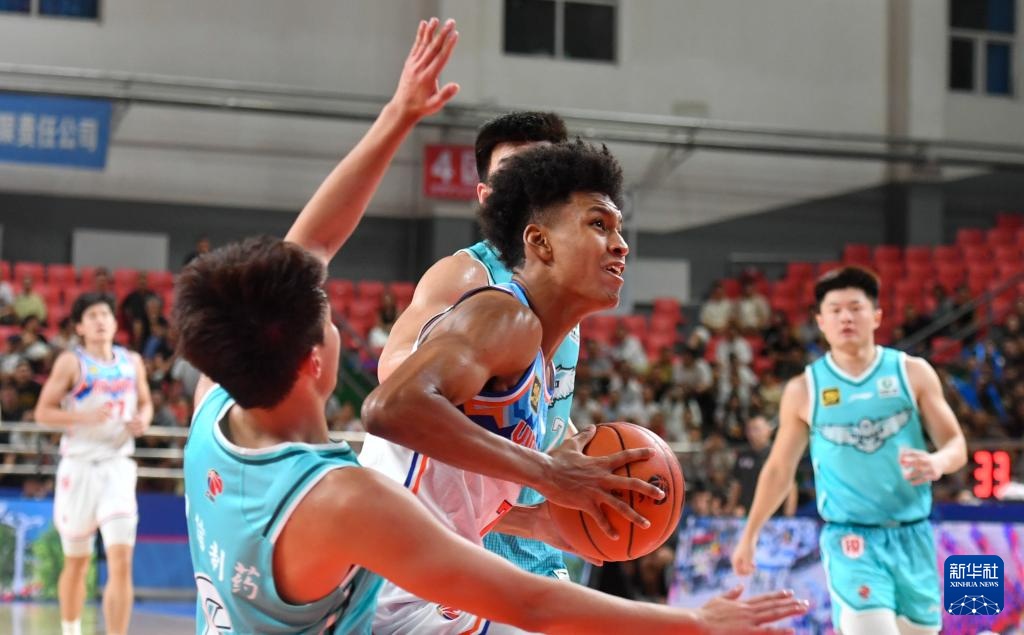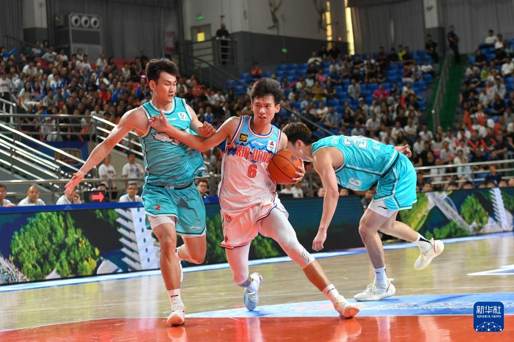 8月16日,新疆伊力特隊球員阿不都沙拉木(中)在比賽中突破。