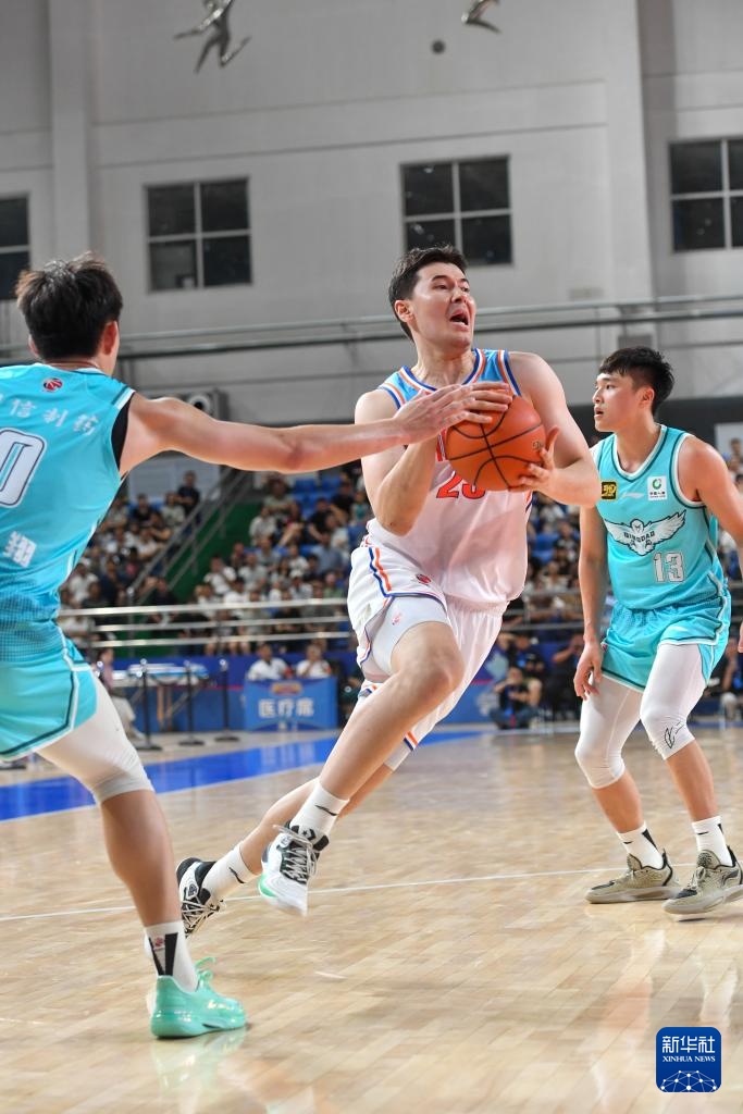 8月16日,新疆伊力特隊球員楊芮(中)在比賽中進攻。