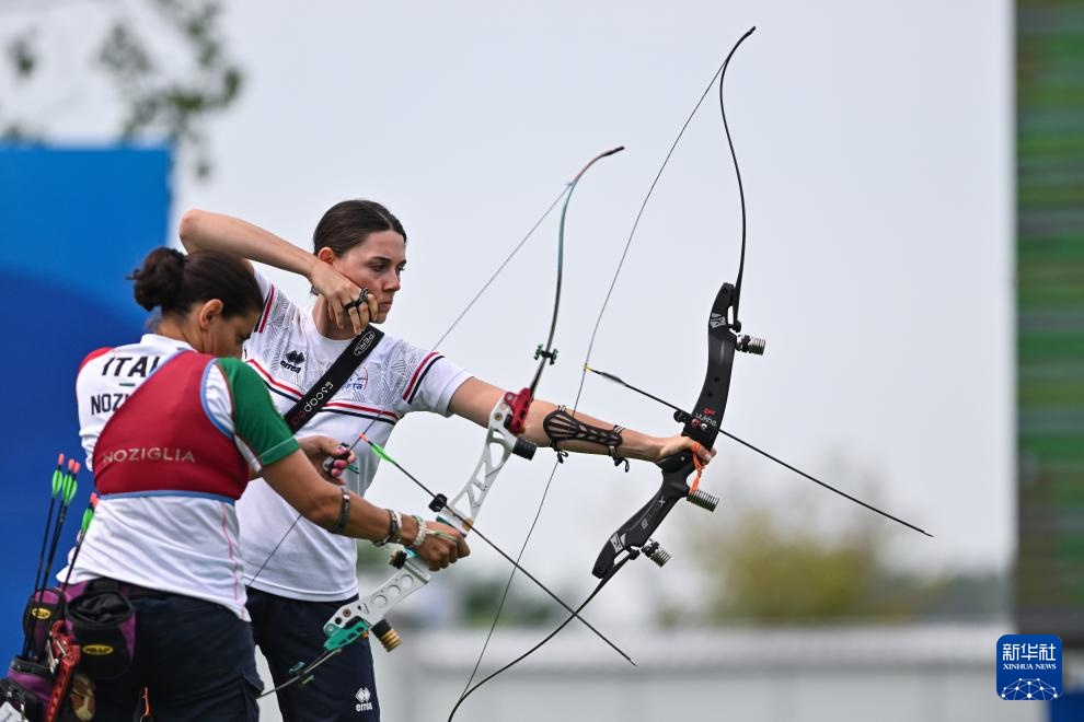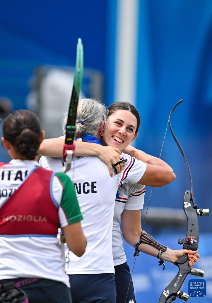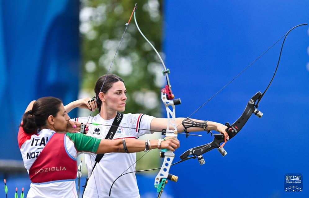 8月16日,法國選手博梅爾(右二)在比賽中取箭。