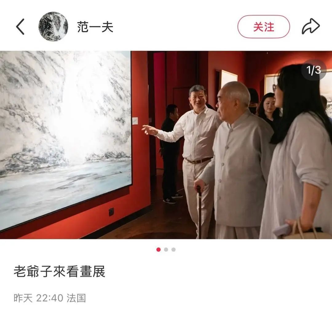 然而,僅僅數小時后,在8月16日22時40分,小紅書名為“范一夫”的賬號發布圖文,稱“老爺子來看畫展”,沒有標明看展時間和地點,而其IP地址顯示為法國。記者查詢發現,該賬號并未實名認證。