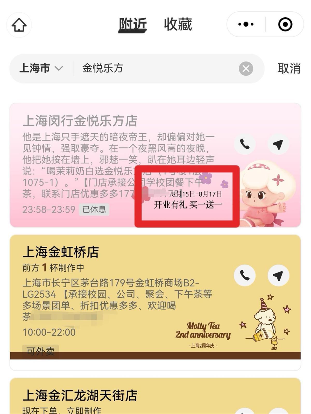 涉事門店事發當天處于開業活動期(截圖自茉莉奶白點單程序)