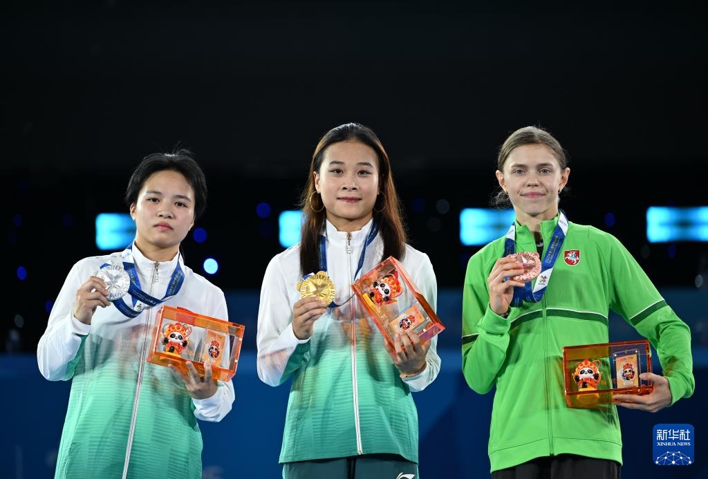8月17日,亞軍中國選手劉清漪、冠軍中國選手郭樸和季軍立陶宛選手妮卡(從左至右)在頒獎儀式上。