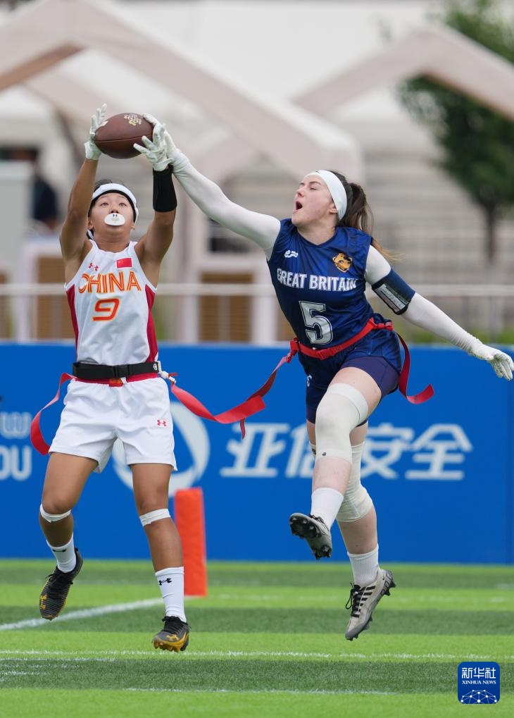 當日,在2025年成都世運會腰旗橄欖球女子第5名爭奪賽中,中國隊不敵英國隊,獲得第六名。