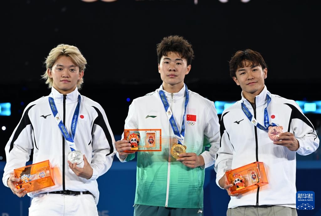 8月17日,冠軍中國選手亓祥宇(中)、亞軍日本選手菱川一心(左)、季軍日本選手半井重幸在頒獎儀式上。