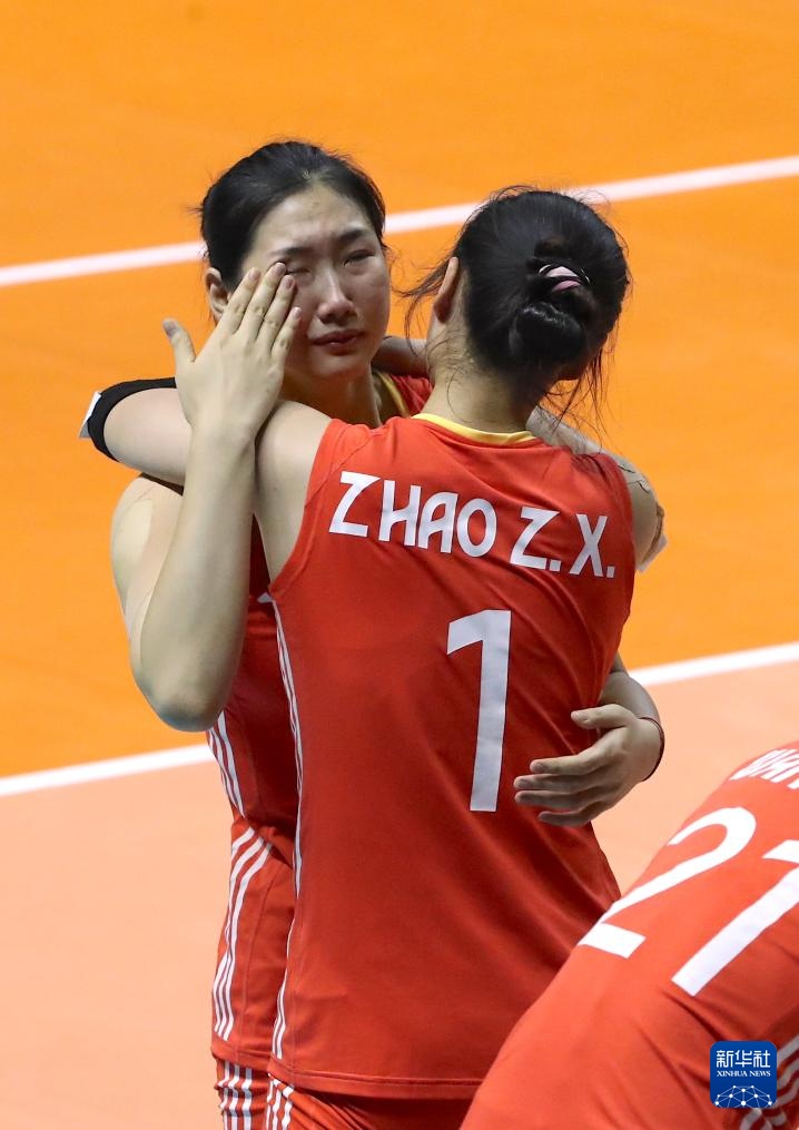 8月17日,中國(guó)隊(duì)球員在比賽中慶祝得分。