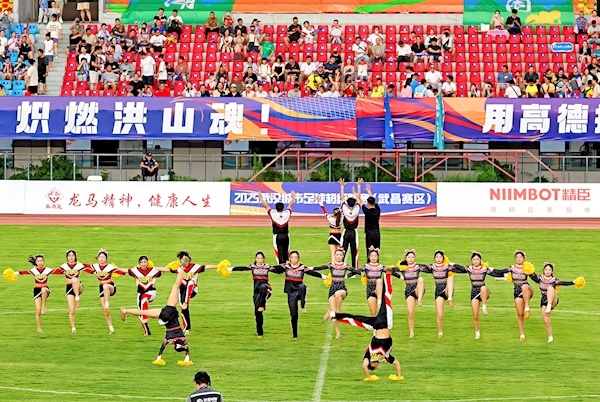 比賽開始前,洪山區(qū)教育局的啦啦操表演驚艷亮相,高難度的托舉動作引發(fā)陣陣驚呼。