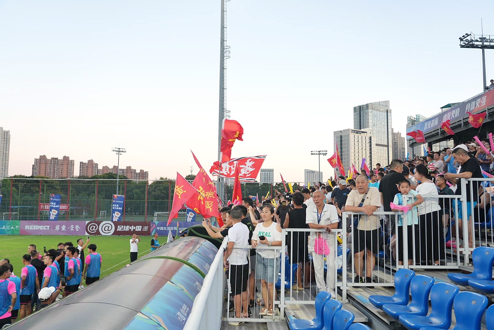 8月17日晚上7時,“漢超”開賽第二天,夏日晚間暑氣持續(xù),武漢體育中心足球場內(nèi),東西湖區(qū)隊與蔡甸區(qū)隊的激戰(zhàn)正酣。場邊,震天的戰(zhàn)鼓聲此起彼伏,為賽場注入澎湃動力。