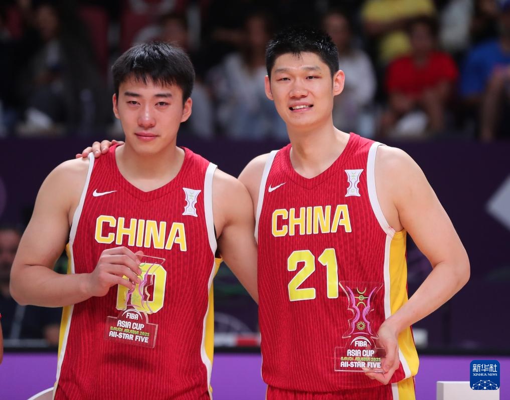 8月17日,中國隊球員胡金秋(右)和王俊杰入選亞洲杯最佳陣容。