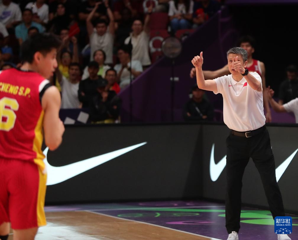 8月17日,中國隊主教練郭士強在比賽中布置戰術。