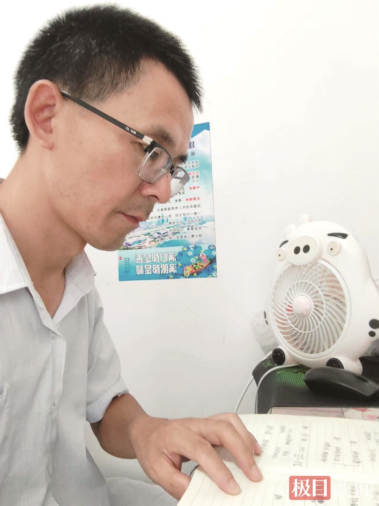 宋志武在翻看記錄患者藥品情況的記錄本 通訊員供圖