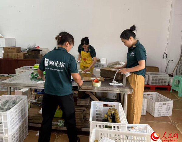 工作人員將花椒產品發往全國各地。人民網記者 杜燕飛攝