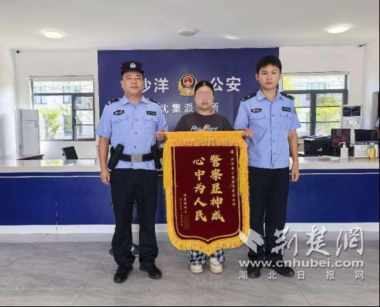 荊楚網(湖北日報網)訊(通訊員 姚薇 劉璠 )8月18日,沙洋縣沈集鎮居民張女士帶孫女小何(14歲)到沙洋縣公安局沈集派出所送來錦旗,對辦案民警快速破案,跨省挽損表示感謝。