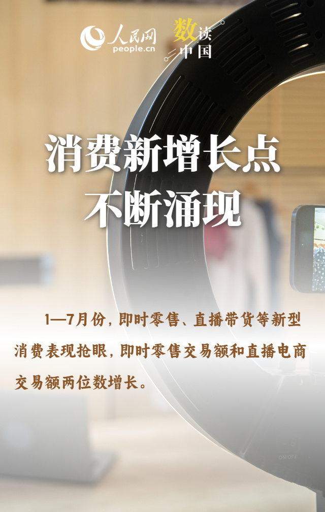近日,國新辦召開新聞發布會,介紹2025年7月份國民經濟運行情況。數據顯示,7月份,消費市場延續總體穩定發展態勢,基本生活類和升級類商品銷售增勢向好,網上零售額創年內新高,新型消費活力增強,線上消費表現亮眼,服務消費需求持續釋放……通過幾組數據,一起感受我國消費市場的發展活力。