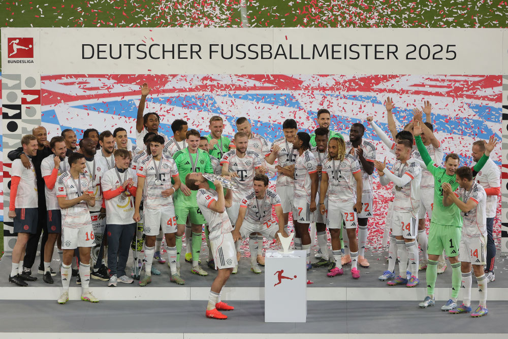 5月10日,拜仁慕尼黑隊舉行頒獎儀式慶祝奪得歷史第33個德甲冠軍。新華社發(菲利普·魯伊茲攝)