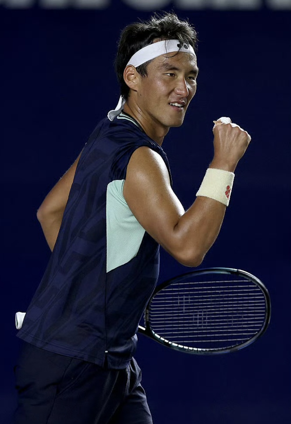 布云朝克特在比賽中慶祝得分。圖片來自ATP巡回賽官方微博