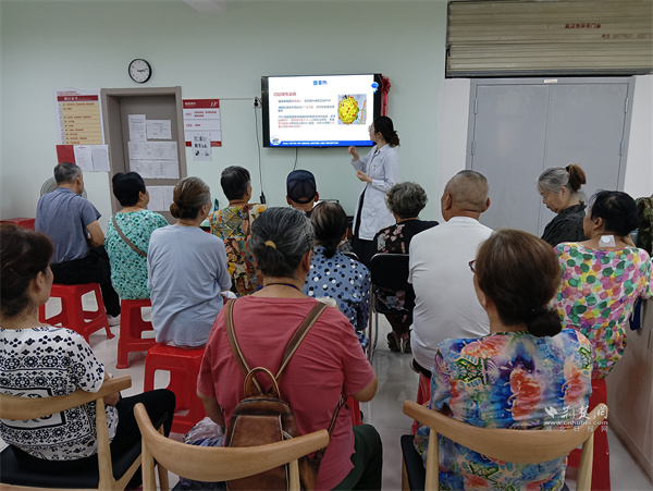 活動伊始,來自武漢市第三醫院的專家醫師為居民帶來了一場深入淺出的“基孔肯雅熱”防治知識講座。醫生系統講解了該病毒的傳播途徑、典型癥狀——如高熱、劇烈關節疼痛和皮疹等,并緊密結合本地生活場景,重點強調了蚊媒孳生環境的日常排查要點:定期清理陽臺積水、疏通排水溝渠、翻轉閑置水盆等。針對社區內商戶和賓館較多的情況,專家特別提示需重點關注露天水池、空調接水盤等易積水區域。在個人防護方面,醫生建議居民在蚊蟲活躍時段盡量減少外出,外出時穿著淺色長袖衣物、正確使用驅蚊劑等。現場居民踴躍提問,專家一一耐心解答,互動氣氛熱烈。
