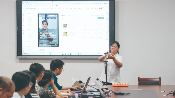 日前,在王家畈鎮小河村村委會,黨支部書記陳海燕正通過直播間介紹家鄉好物。這場充滿鄉土氣息的直播活動,既是助農實踐,更是該鎮鄉村“云集市”抖音培訓課的考場。村干部在“上午學理論、下午練實操”的強化訓練中,逐步開始掌握這門“新農活”。