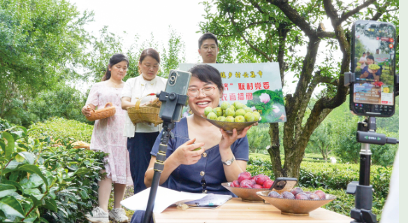 王家畈鎮“三村聯盟”實現了從賣產品到樹品牌的跨越。7月17日,橫沖村云包垴的李子樹下,王家畈鎮三村聯盟助農直播首場活動火熱開播。