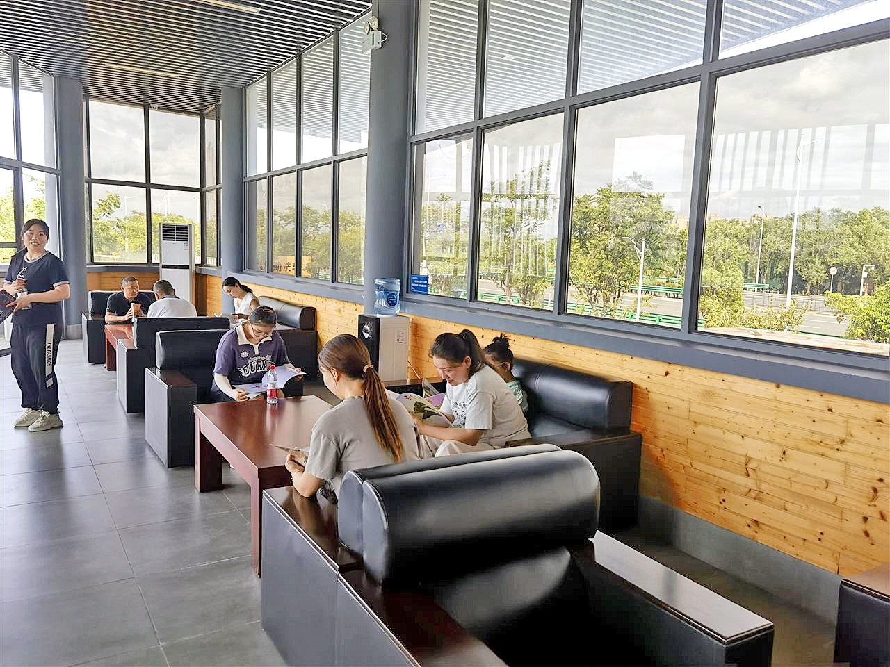 近日,在黃陂區前川街道岱黃高速公路入口處的程家墩驛站二樓閱覽室內,市民徐靜正帶著孩子在這里靜靜地閱讀,“樓上是閱覽室,樓下有鍛煉場,旁邊還有小游園,既能讀詩還能看遠方。”