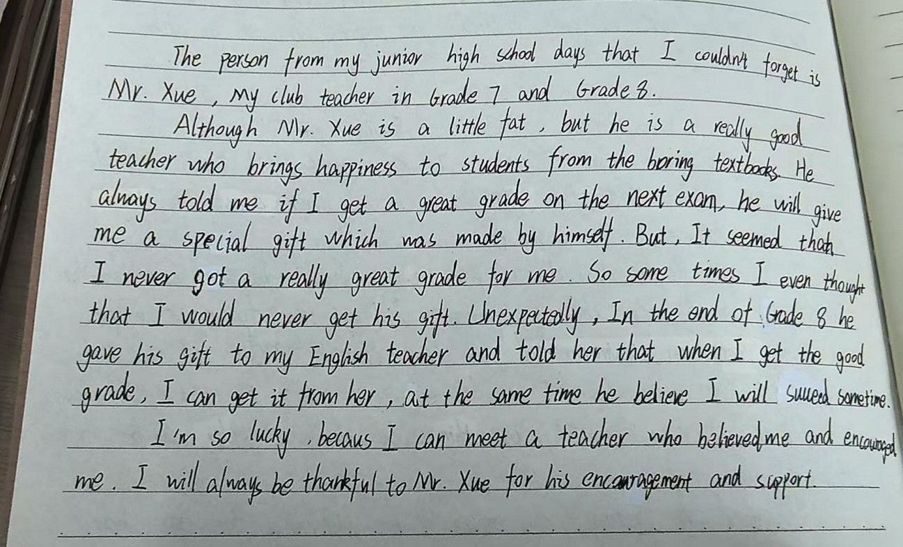 在十堰市竹溪縣實驗中學里,3D打印課上的“拿破侖大炮”改變了一個男孩的軌跡。這個曾排名年級400多名的學生,因設計的大炮模型被選中打印成實物而重燃學習斗志。他與老師約定:考進前200名就能獲得專屬模型。雖然后來他沒達到約定名次,但還是考上了縣里理想的高中,薛斐老師還是讓班主任轉交了當初約定的那個模型。“I am so lucky, because I can meet a teacher who believed me and encouraged me.”男孩在手寫的英文信里寫道,字里行間滿滿的都是被理解的溫暖。
