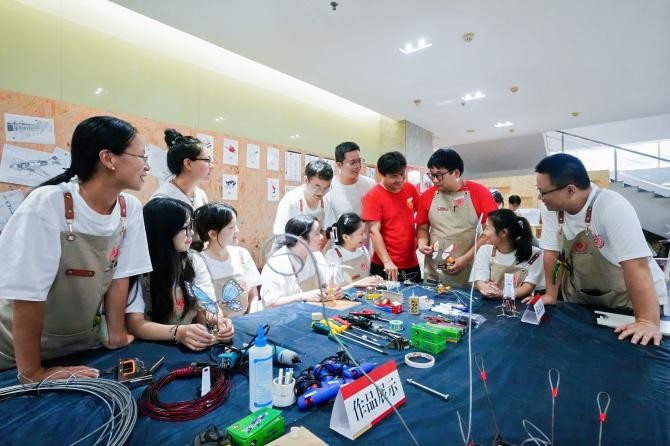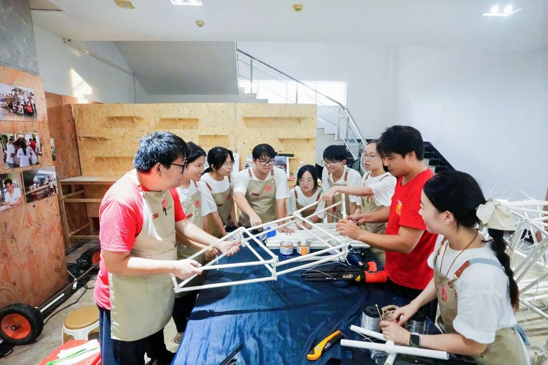 2004年7月,灼灼驕陽之下,三百多名學子,相應政府號召,齊聚武漢,開啟了到鄉村學校任教,赴山鄉僻地播種的崗前培訓活動。那時它還只是個簡陋的美工社團,支教生們握著畫筆,在白色的畫布上涂抹夢想,為校園情景劇制作道具,用最樸素的方式播撒美的種子。沒人能想到,這個最初只為裝點培訓活動的小團體,會在二十年后進化成擁有飛機制造、風動力、機械三大工坊的“未來制造廠”。