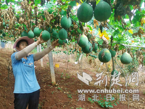 荊楚網(wǎng)(湖北日報網(wǎng))訊(通訊員 鄭可)“瓜蔞出芽、開花時的管護最為重要。花謝后,會從青翠的‘小圓果’生長成現(xiàn)在翠綠的‘小西瓜’,再過一兩個月,會完全成熟變成黃褐色的‘金元寶’,現(xiàn)在天氣較為干燥,大家要注意管護……”近日,在京山市永興街道觀音村瓜蔞產(chǎn)業(yè)種植基地,整齊排列的瓜蔞架下,一顆顆手掌大小、青翠透綠的“圓疙瘩”探出身來,負責人魯志海正帶著農(nóng)戶熟練地整枝、清藤、除雜,做好藤枝管護。