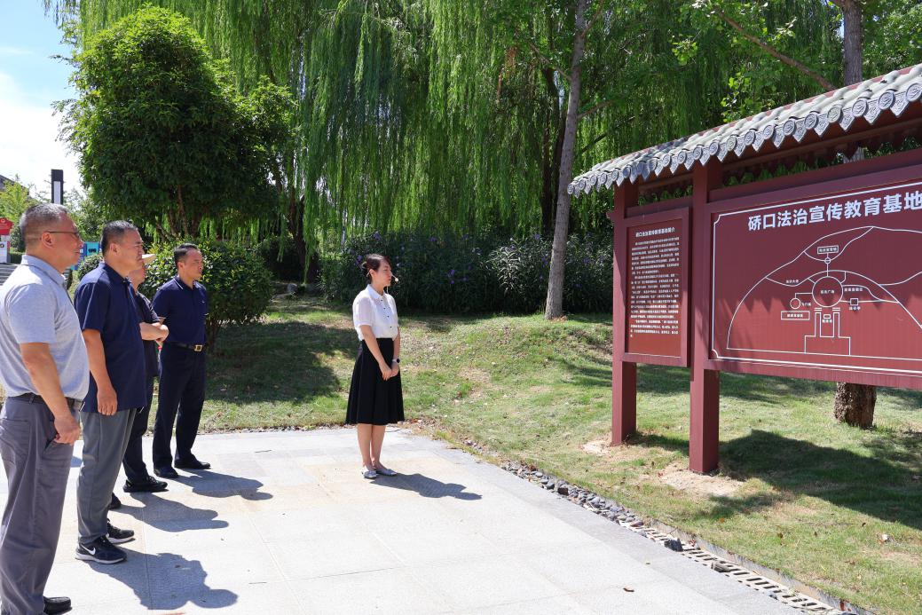 現場,考察組一行聽取了硚口法治宣傳教育基地的建設理念及功能介紹,詳細了解基地“一軸一帶三區”規劃布局,認真觀摩憲法溯源廣場、憲法宣誓墻、國安飛行棋等法治文化小品景觀,在“薈聚·公法驛”內交流探討公共法律服務“前店后廠”運營模式。硚口區人大法制委負責人介紹道:“硚口法治宣傳教育基地的建成,充分體現了中國特色社會主義法治文化的具象和濃縮,在傳承與發展中構建更加完備的法治生態體系。”
