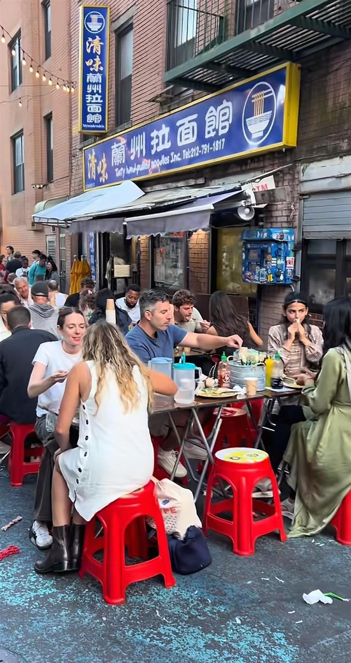 近日,一位中國網友分享自己路過紐約唐人街一家蘭州拉面館的視頻,獲得廣泛關注。視頻中,老外們坐在塑料凳上就餐,有說有笑,還有很多人在排隊等待取餐。
