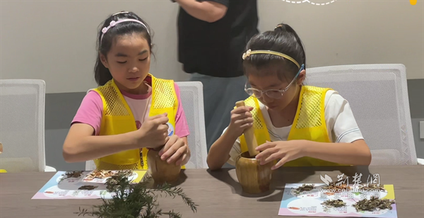 中藥香囊手工DIY環節,孩子們在中藥師指導下,逐一辨識艾草、薄荷、丁香等草藥,并按喜好搭配、搗藥,再親手縫制香囊。一個個小巧精致的香囊,承載著孩子們對中醫藥文化的探索。活動尾聲,工作人員為孩子們頒發活動參與紀念證書并合影留念。
