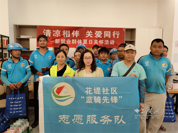 荊楚網(湖北日報網)訊(通訊員 周佳穎 許小玲 張純)8月20日下午,武昌區黃鶴樓街道花堤社區黨委聯合街道社工站在街道新就業群體服務驛站開展“清涼相伴,關愛同行”夏日關懷主題活動,“藍騎先鋒”志愿服務隊成立儀式同步舉行。