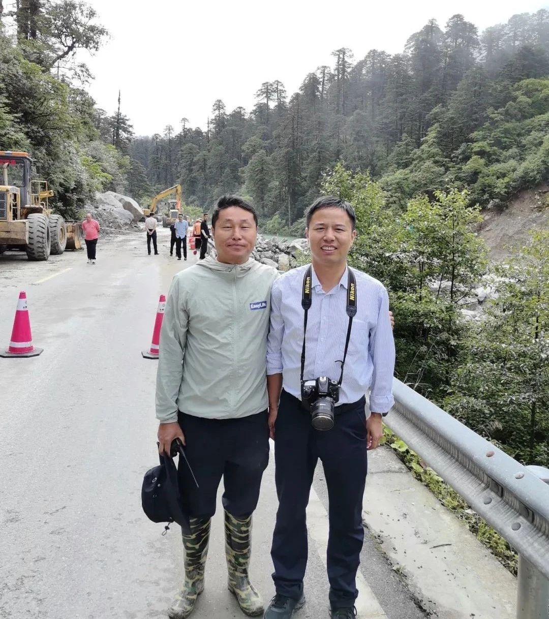 8月1日上午考察小組在從墨脫返回林芝的路上,剛好遇到他在泥石流沖斷的扎墨公路,指揮道路清理工作。面對提問,他目光堅定:“治水不分遠近,家鄉的江河需要我,我就扎根在這里”。